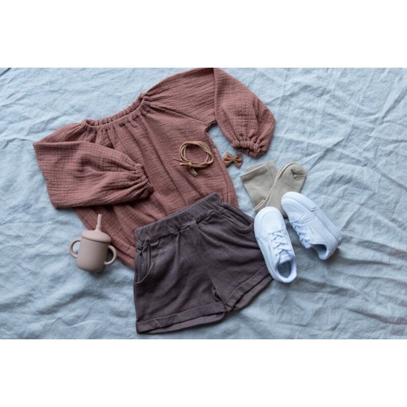 Productomschrijving Heerlijk shortje in zachte stof. Kleur: donkerpaar Pasvorm: Normaal Materiaal: 94% Cotton 6% Lycra